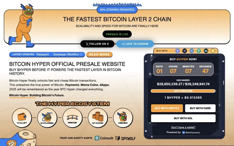 Bitcoin Hyper($HYPER)筹集近2800万美元以推出其Solana支持的L2