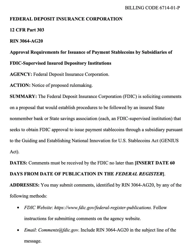 FDIC将在提案发布后接受公众意见,期限为60天。