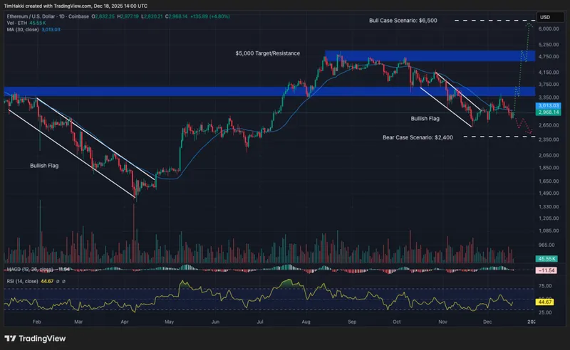 Claude AI预测,以太坊的价格可能会从当前的2,961美元下跌19%,年底可能降至2,400美元,如果市场持续看跌。
