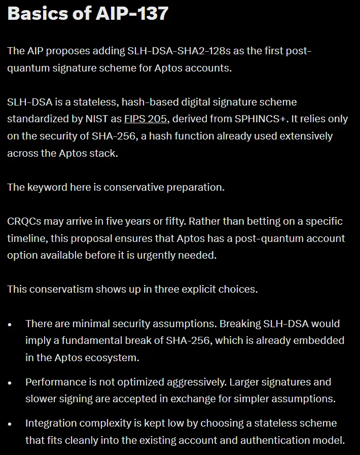 Aptos推出了一种可选的后量子签名方案,以应对量子计算进步可能对现有加密技术带来的长期风险。