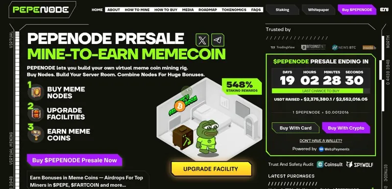 PEPENODE:即将结束的挖矿赚币的迷因币预售