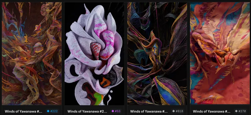 近年来,这位艺术家推出了多个非同质化代币项目,其中包括"Winds of Yawanawá",这是一个于2023年7月创建并发布的NFT系列,项目与巴西亚马逊Yawanawá原住民社区合作,将实时环境数据与传统艺术融合成一个生成式数字系列。