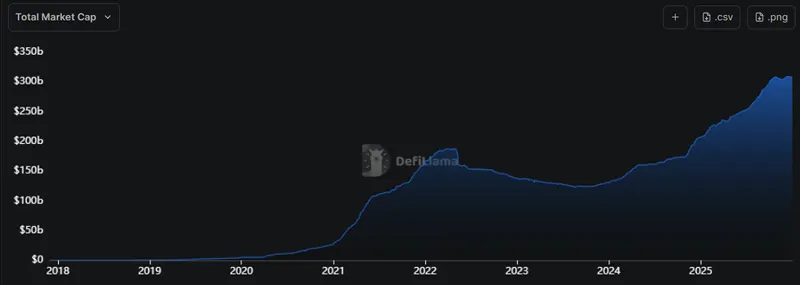 据数据聚合商DefiLlama统计,市场对稳定币的关注推动该板块市值持续增长,预计到2025年初市值将从约205亿美元增至307亿美元。