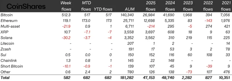Butterfill提到,2026年初,加密ETP在上周五录得6.71亿美元的资金流入,全周累计流入达5.82亿美元。