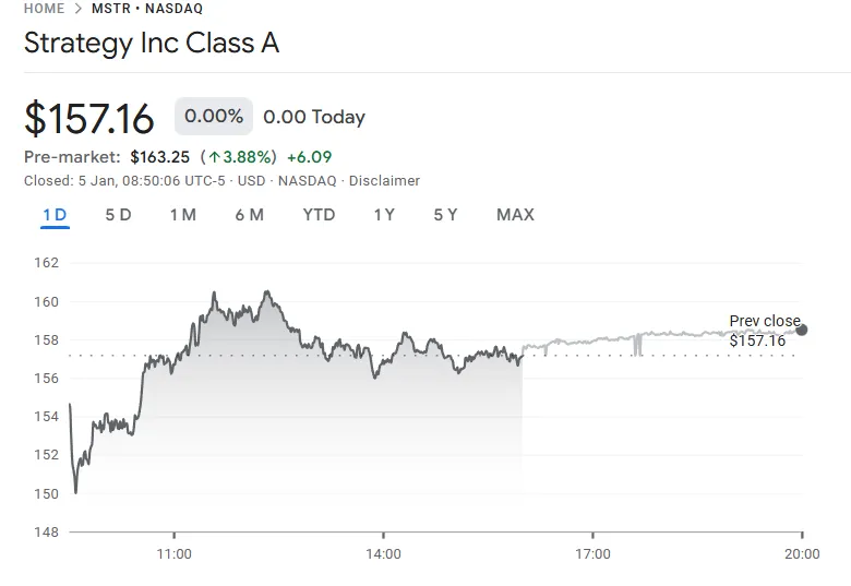 周一,Strategy股价在盘前交易中上涨3.88%,突破157美元,但过去一年该股已下跌超过58%。