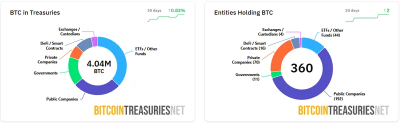 根据Bitcointreasuries的数据,在Strategy的引领下,上市公司已累计持有109万枚比特币,占总供应量的5.21%。