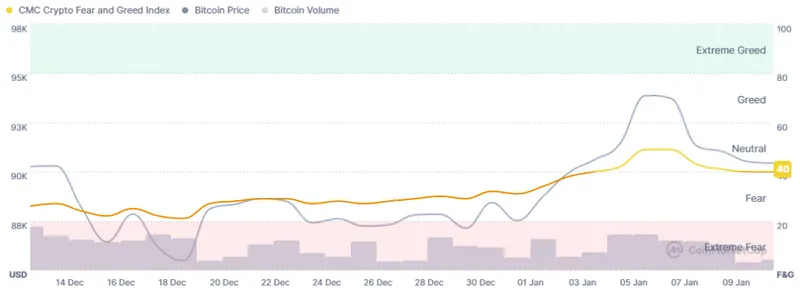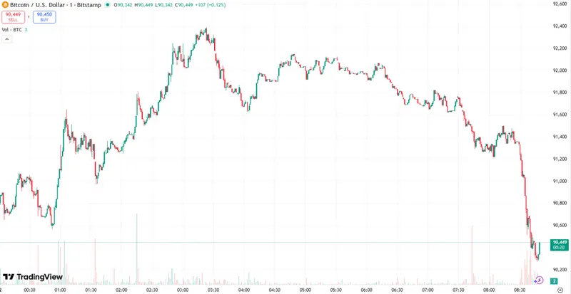 写作时,比特币价格为91,271美元。在过去一天的前半部分,该币大多横盘交易。随后迅速跌至日内低点90,244美元,再上涨至日内高点92,356美元,但之后又回调。