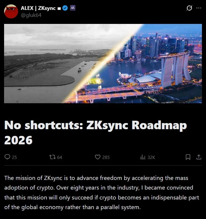 ZKsync的2026年计划将重心从实验性转向为银行、企业和受监管金融系统设计的生产就绪基础设施。