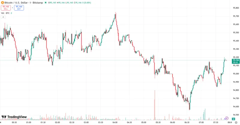 比特币(BTC)自昨日以来上涨3.4%,目前交易价格为$94,953。