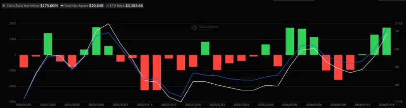 此外,美国以太坊ETF也录得流入。1月14日的流入总额为1.75亿美元,这一水平在12月和10月也曾短暂出现。此次流入使净流入总额上升至127.4亿美元。