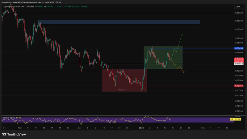 在突破交易区间后,DOGE保持在0.14美元的支撑位之上。如果需求继续吸收卖压,向近期高点的反弹可能会形成。