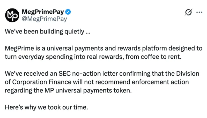 美国证券交易委员会在周四的函件中允许MegPrime继续推进计划,并表示只要平台遵循其阐述的方案,便不采取执法行动。