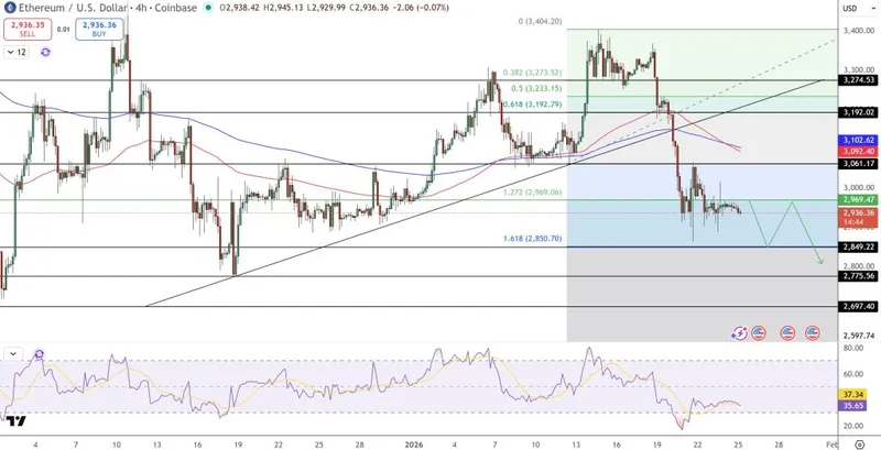 — 贾斯廷·德雷克(@drakefjustin)2026年1月23日以太坊价格预测:压缩在2950美元附近,ETH期待下一步