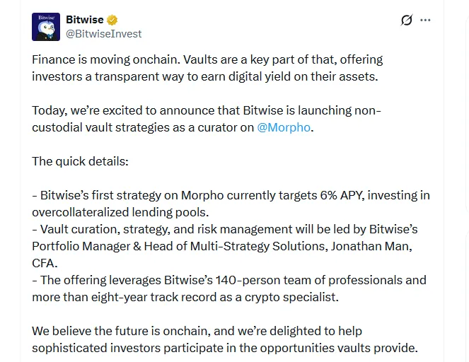 Bitwise通过Morpho部署链上金库