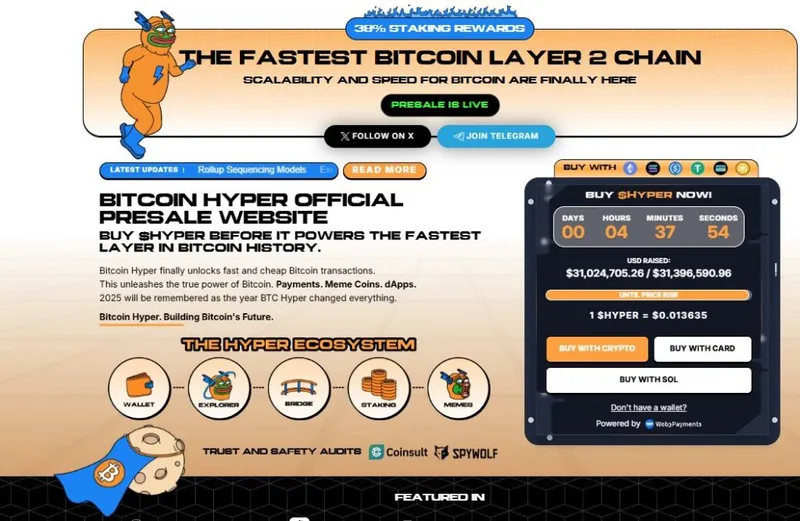 比特币Hyper($HYPER)为比特币生态系统带来了新阶段。尽管比特币仍是安全性的金标准,但比特币Hyper弥补了其一直缺乏的:Solana级别的速度。其结果是:快速、低成本的智能合约、去中心化应用,甚至是模因币的创建,所有这些都由比特币保障。