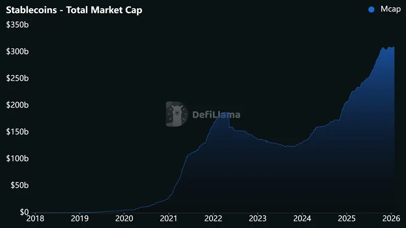 — Cryptonews.com (@cryptonews) January 20, 2026有关担忧的数字已经显现。根据 DefiLlama 的数据,稳定币供应在过去一年中增长超过40%,现在已超过3000亿美元。