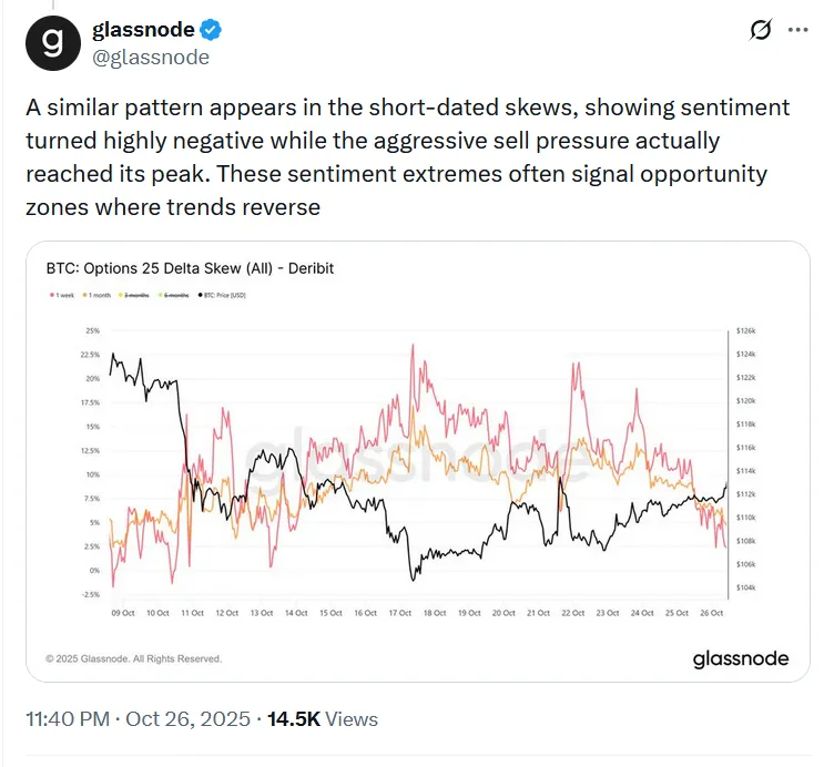 Glassnode在周日的社交媒体帖子中指出,抛售压力和负面情绪似乎已达到极端水平,趋势可能正在发生逆转。