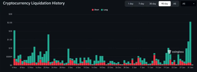 激烈的强制平仓推动了市场的抛售。一天内超过25亿美元的加密货币头寸被清算,其中以太坊占据了最大比例。由于许多交易者押注价格上涨,当关键支撑位被突破时,以太坊面临了大量的保证金追缴。