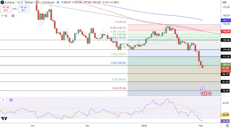 SOL在短短几周内从140-145美元的区间下跌,几乎抹去2025年底的复苏。对于新投资者而言,这种下跌通常源于恐惧、被迫抛售和不确定性,而非技术本身的突然失效。