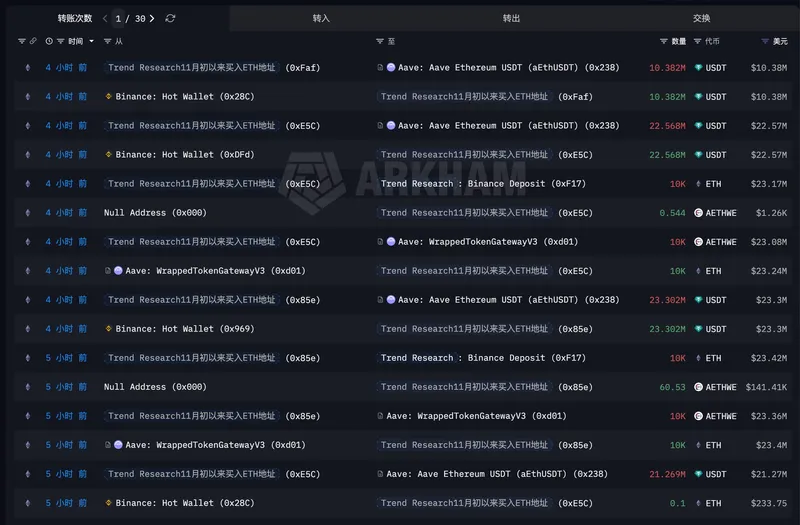 Trend Research随后又从交易所借入7750万美元的USDT用于偿还贷款。根据区块链数据显示,该公司将ETH借款的爆仓价从1880美元降至1830美元。