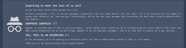 林以“Pharoah”之名活跃于网络,随后试图勒索平台用户,威胁买家和卖家支付款项,否则将公开他们的用户记录和加密地址。