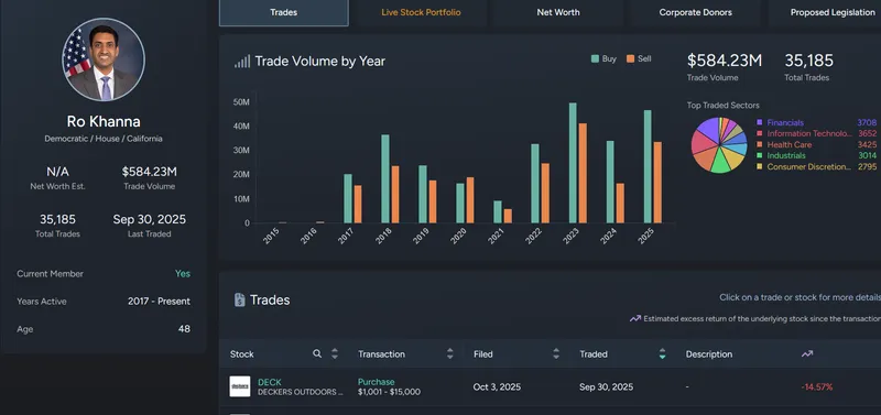 尽管Khanna提到特朗普与加密货币的关系,但他自己在股市的投资也引发了潜在的虚伪性。根据Quiver Quant的数据,Khanna在2025年的股票交易量已经达到8030万美元。