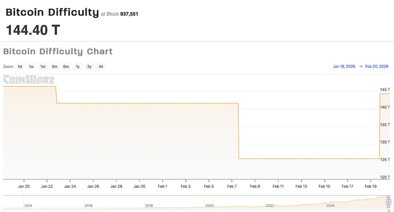 比特币挖矿难度在最新调整后上升至144.4万亿,增幅达到15%。