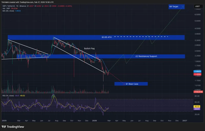 进一步的上涨动力可能包括随着美国上市的XRP ETF推出而增加的机构兴趣、Ripple日益扩展的国际合作伙伴关系,以及如果CLARITY法案在美国通过,监管环境的改善。