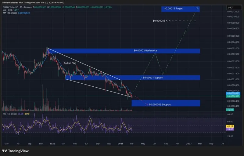当前价格约为0.0000057美元,ChatGPT的分析显示,若突破0.000025至0.00003的阻力区间,SHIB可能迎来强劲的上涨势头,年底前有望达到0.00012美元。