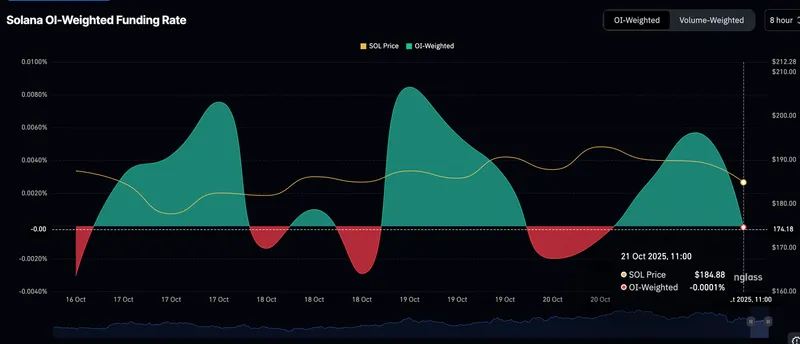 (上图为Solana OI加权融资利率,数据来源:CoinGlass)
