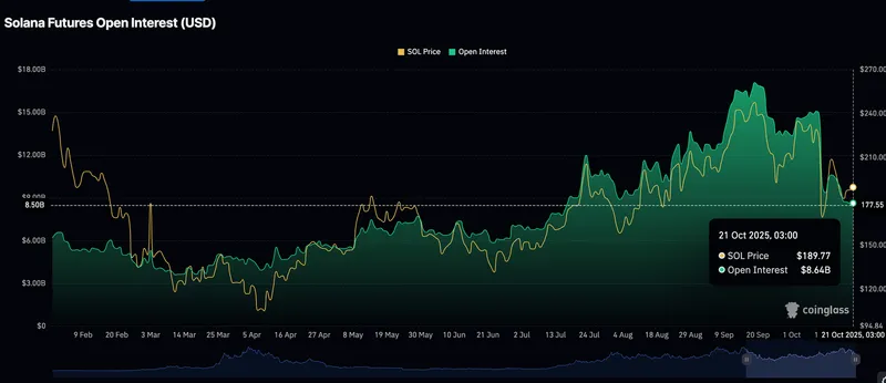 此外,这一趋势也体现在衍生品市场。Solana期货未平仓合约(OI)自10月的150亿美元高点降至86.4亿美元,显示投资者兴趣减弱。
