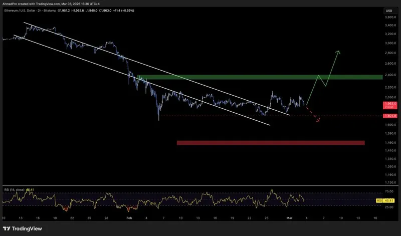 从技术面来看,以太坊在2150美元附近形成了压缩区间,这一价位成为了关键的结构水平。如果周线确认跌破该水平,将验证更大的看跌形态,并将1320美元区域作为下行目标。