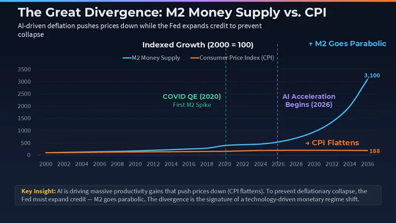 Burnett的论点集中在其所称的“AI通缩引擎”,认为人工智能推动的自动化与成本降低将带来持续的通缩压力。