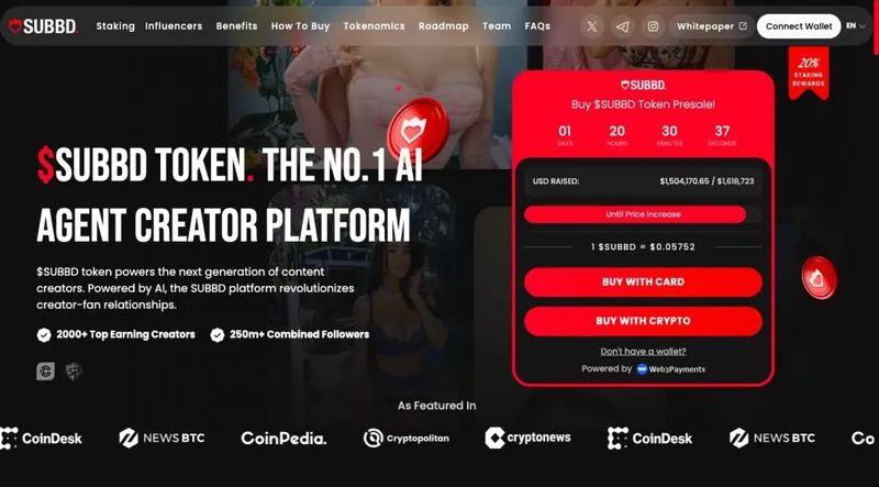 随着下一轮牛市即将到来,下一次altseason将会非常庞大。一个有潜力超越上述项目的早期代币是SUBBD($SUBBD),这是一个集成了AI的内容平台,可能会颠覆850亿美元的创作者经济。