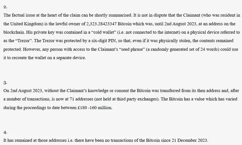 在上周二提交至英国高等法院的判决书中,原告Ping Fai Yuen的律师表示,其妻Fun Yung Li及其妹妹秘密录制了原告的助记词,并将价值1.76亿美元的比特币转移至71个不同地址。