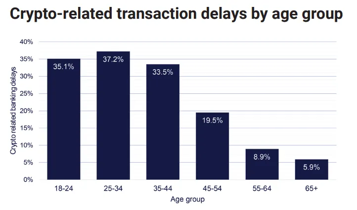 约30%的投资者表示,他们在尝试购买加密货币或向交易所转账时,至少有一次遇到延迟或被拒,而2025年这一比例为19.3%。