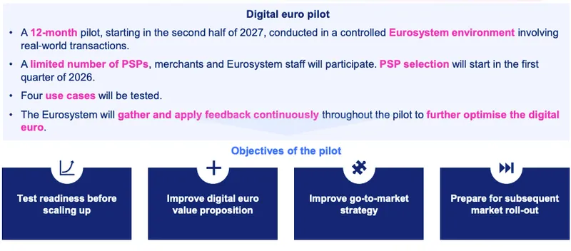ECB此前已计划于2027年下半年启动为期12个月的数字欧元试点,并将提前甄选获得欧盟许可的支付服务提供商。