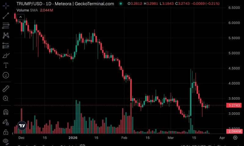 TRUMP代币目前在$3.27附近稳固,经历了四月25日马阿拉歌晚会宣布后的波动。尽管该代币仍远低于2025年的高点,但随着活动临近,交易量显示出重新引起关注的迹象。