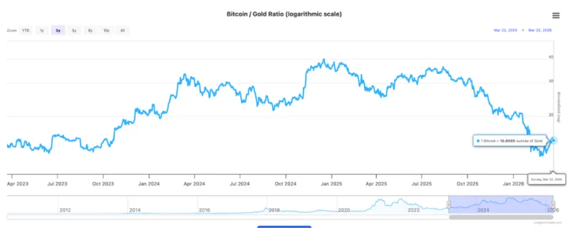 比特币与黄金的比率在近期波动中保持相对稳定,这与2022年比特币随风险资产下跌的关联模式形成鲜明对比。数据显示,比特币回升至$71,043的同时,传统风险资产仍面临压力,表明脱钩理论正在获得结构性支持,而不仅仅是叙事上的动能。