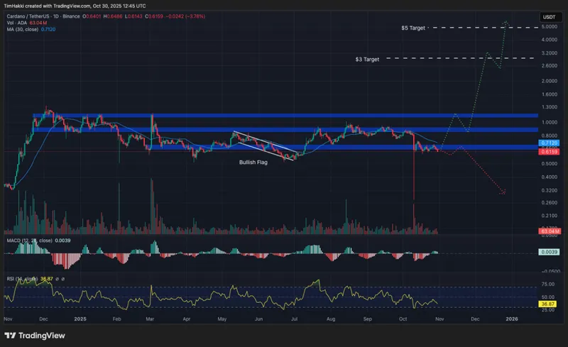 Qwen3-MAX预测,ADA在11月可能涨至5美元,较当前的0.6181美元上涨709%。