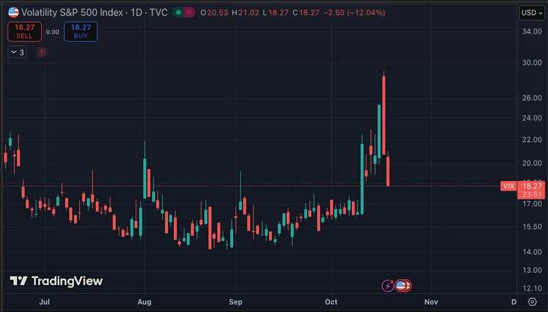 VIX 指数上周五一度飙升至 29,随后回落至 18。标准普尔 500 和纳斯达克指数周一收高,距离历史新高仅一步之遥。