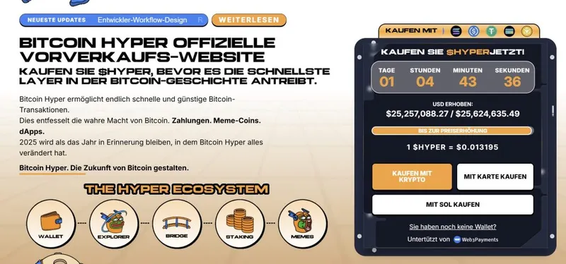 随着比特币活动的增加和对高效BTC基础应用的需求上升,Bitcoin Hyper作为连接两个主要加密生态系统的桥梁脱颖而出。如果比特币奠定了基础,Bitcoin Hyper则可能使其变得快速、灵活且充满乐趣。