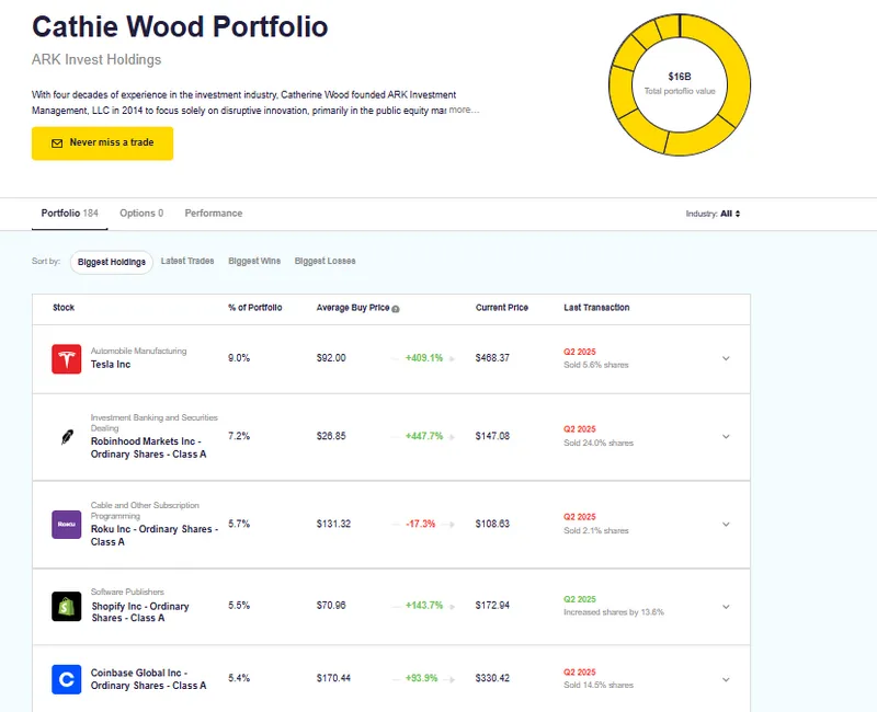 其主要持股包括特斯拉(12.32%)、Coinbase(5.86%)、Roku(5.73%)和Robinhood(4.8%)。