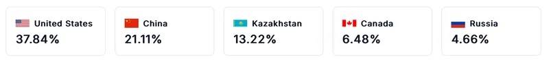 美国在BTC挖矿领域处于领先地位