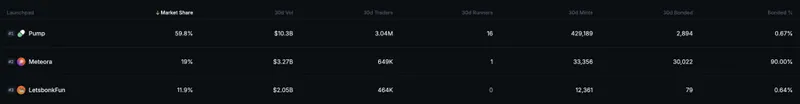 该代币的LetsBonk.fun启动平台现已成为Solana第三大平台,30天交易量达到20亿美元,占据近12%的市场份额。