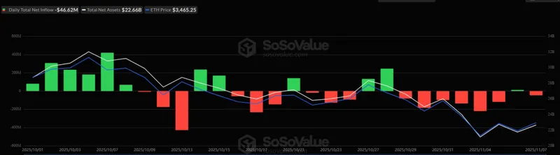 从11月3日至11月7日(东部时间),现货比特币ETF的周净流出达12.2亿美元,创下历史第三大流出记录。现货以太坊ETF的周净流出为5.08亿美元,同样为历史第三大流出。现货Solana ETF则录得1.37亿美元的周净流入。