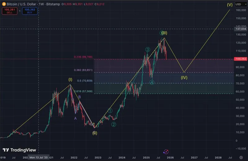 “尽管一些人坚信23.6%的支撑位将保持,但我预计第四波将相当复杂,伴随多次反弹和抛售,最终将触及50%和38.2%的回撤水平(分别为71,000美元和84,000美元)。”Glover总结道。