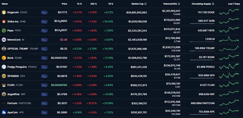 美国总统特朗普官方迷因币成为本周大型市值迷因币中的最大赢家,上涨14.2%。