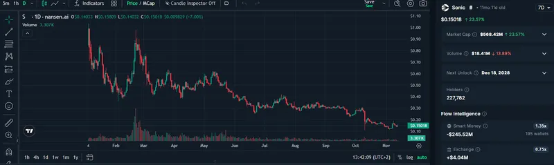 此外,行业内以回报率领先的交易者,或称“聪明钱”交易者,已经在逐步退出他们的头寸。这个群体在过去一周内累计出售了价值2.45亿美元的S代币。