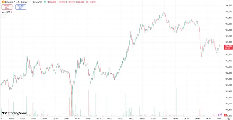 截至周四早晨,比特币交易价格为103,080美元。该币种从日内最高点105,257美元下跌至最低点100,992美元,但已有所恢复。